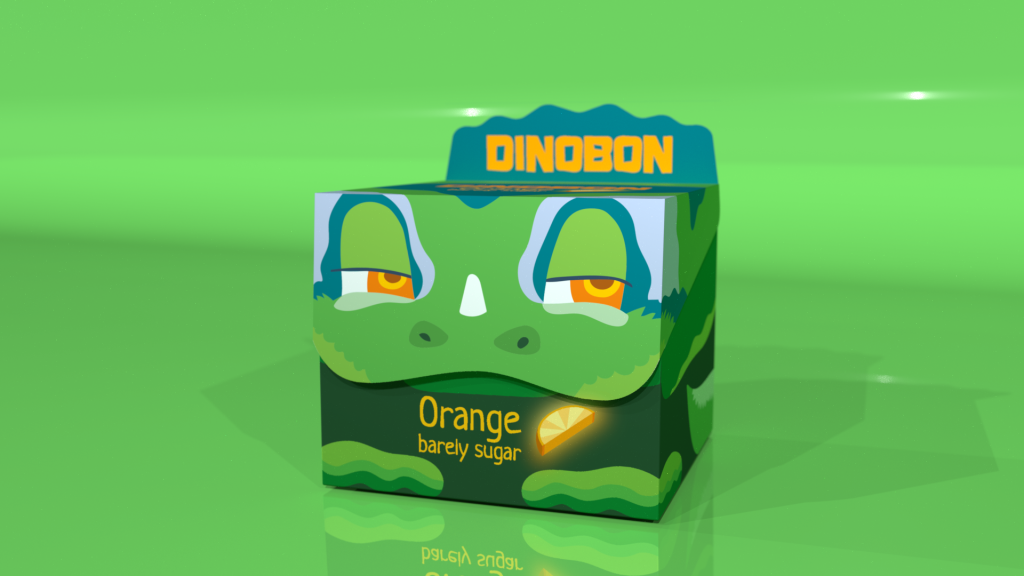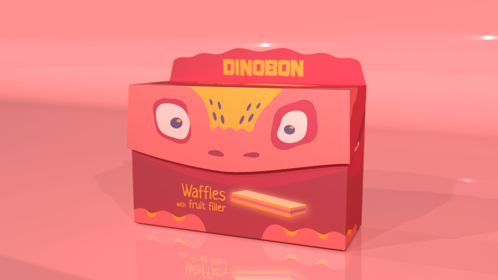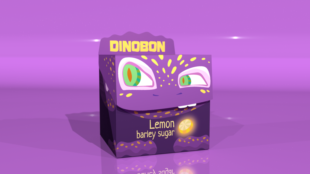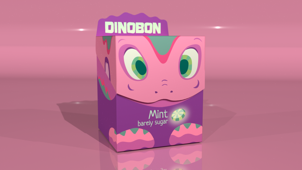 Since it was such a success, I felt inspired to expand the project and create an animated ad for it. It draws its aesthetic from mobile games and playfully “explains” how a dino ended up with a whole box of bonbons.
