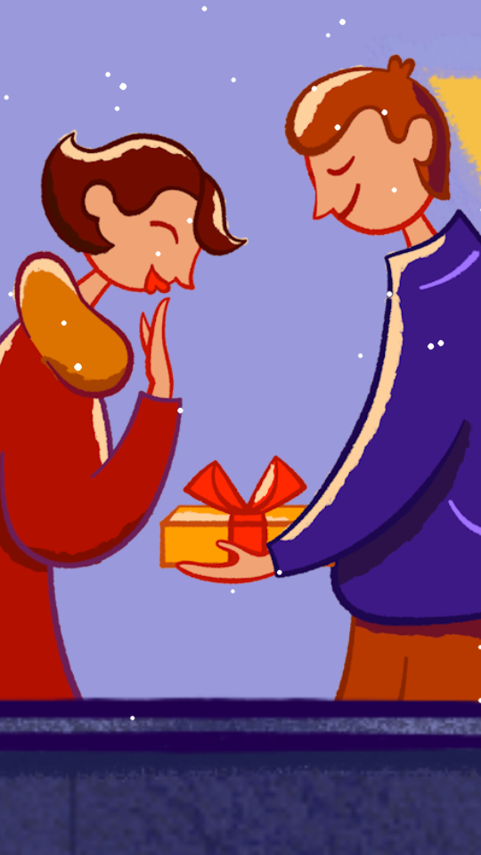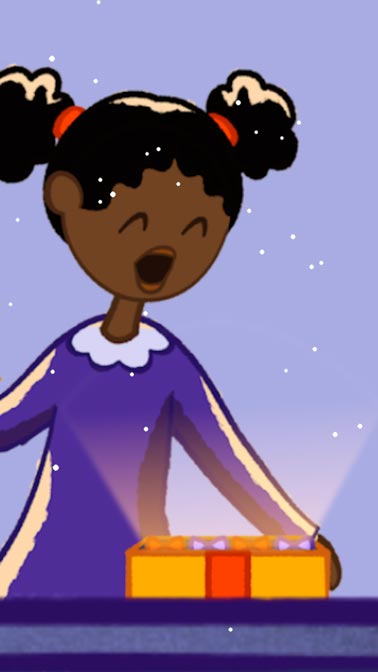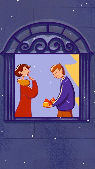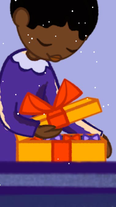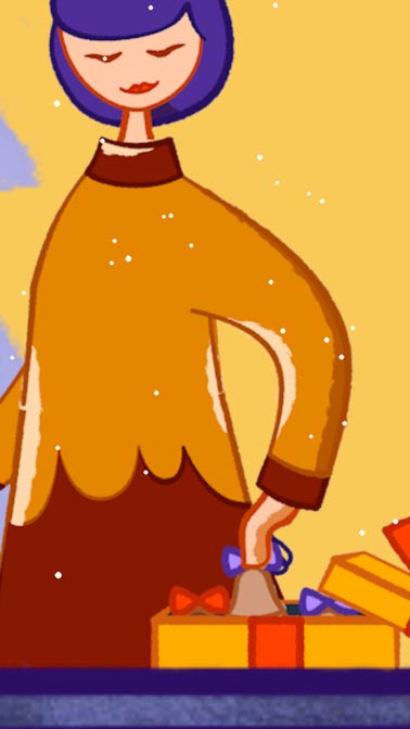I chose to show a journey of a chocolate box shown through different apartments of one house, and to highlight how much joy it brings to everyone. I drew inspiration from Advent calendars, which sometimes depict a house with windows that you can open to peek through and see what is behind.